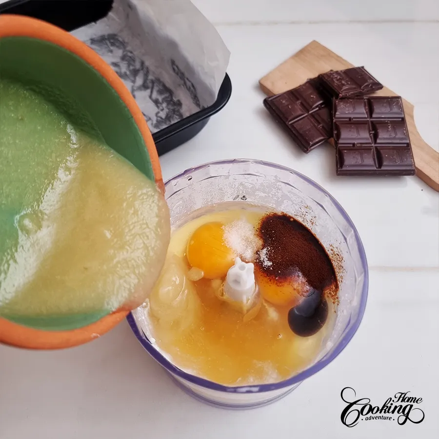 - Add applesauce, honey, eggs, instant coffee powder, salt and vanilla extract.