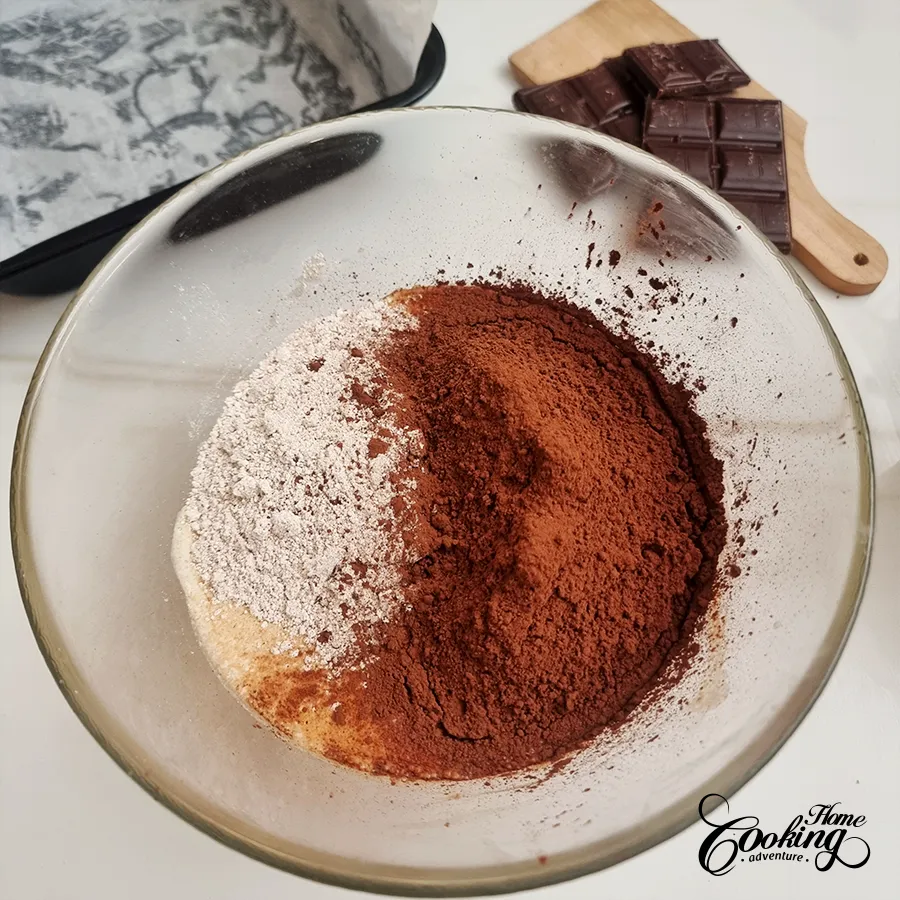 Whisk in the oat flour and cocoa powder, being careful not to overmix. If using chocolate chips or nuts, fold them in at this stage.