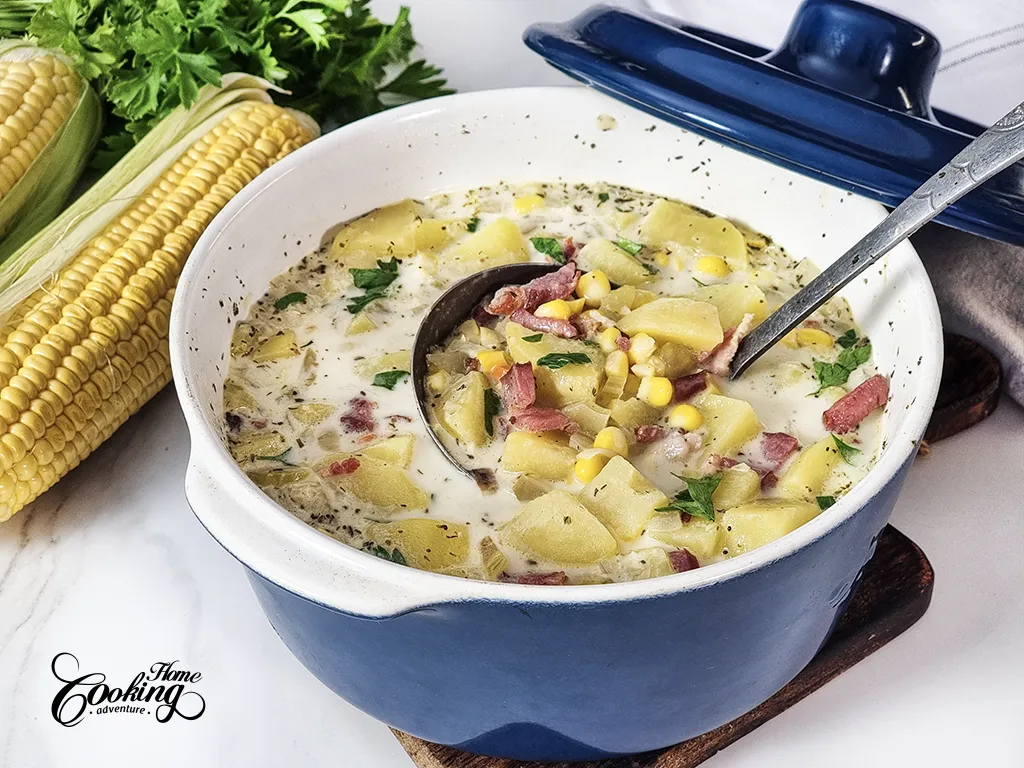 Esta Chowder de Papa y Maíz está llena de los sabores reconfortantes de papas tiernas y maíz dulce en una base cremosa. Es fácil y rápida de preparar y un plato perfecto para una noche fría o una comida acogedora.