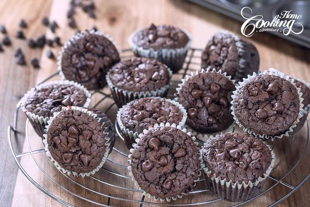 La receta para estos muffins es realmente fácil y solo toma unos minutos prepararla. He usado mi receta de Brownies de Doble Chocolate y la he adaptado para crear los muffins de chocolate más decadentes.