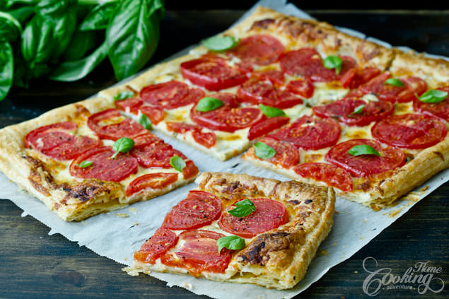Cómo hacer tarta de hojaldre de tomate y albahaca