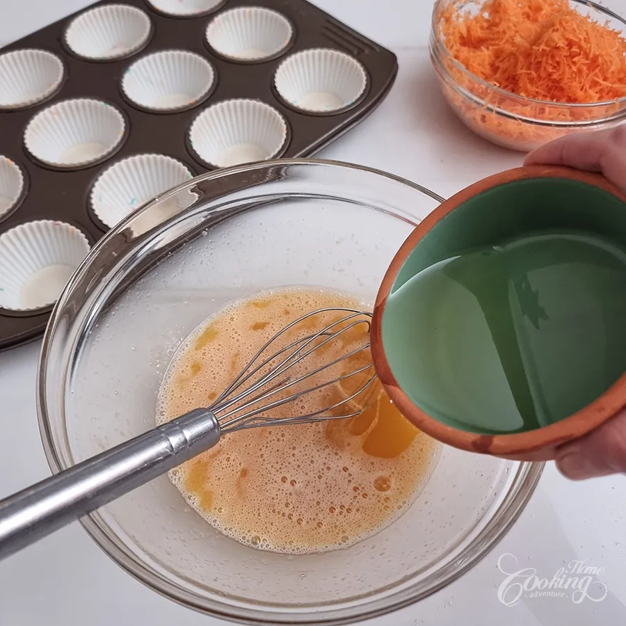 Vierte el aceite vegetal y mezcla hasta que quede cremoso.