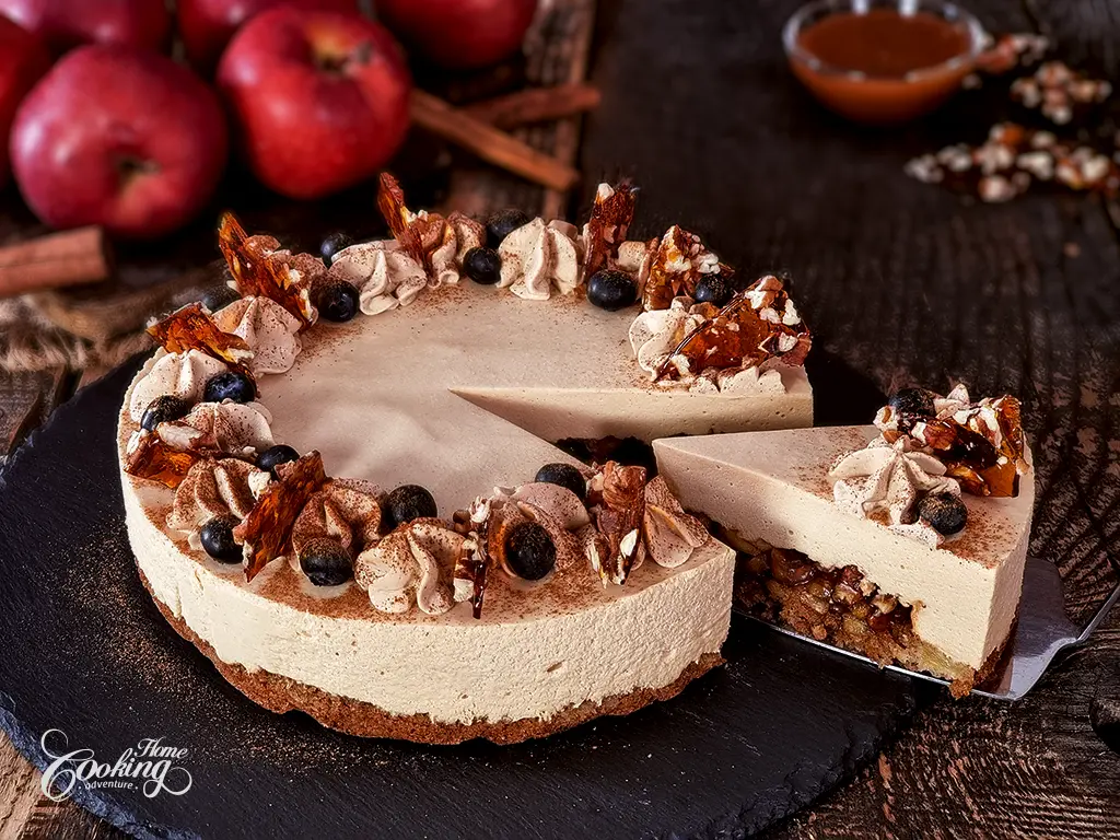 Gâteau mousse caramel aux pommes et aux noix de pécan