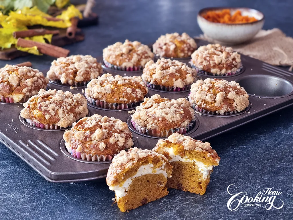 Muffins à la citrouille et au fromage à la crème avec garniture crumble
