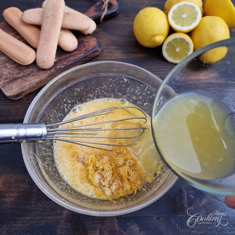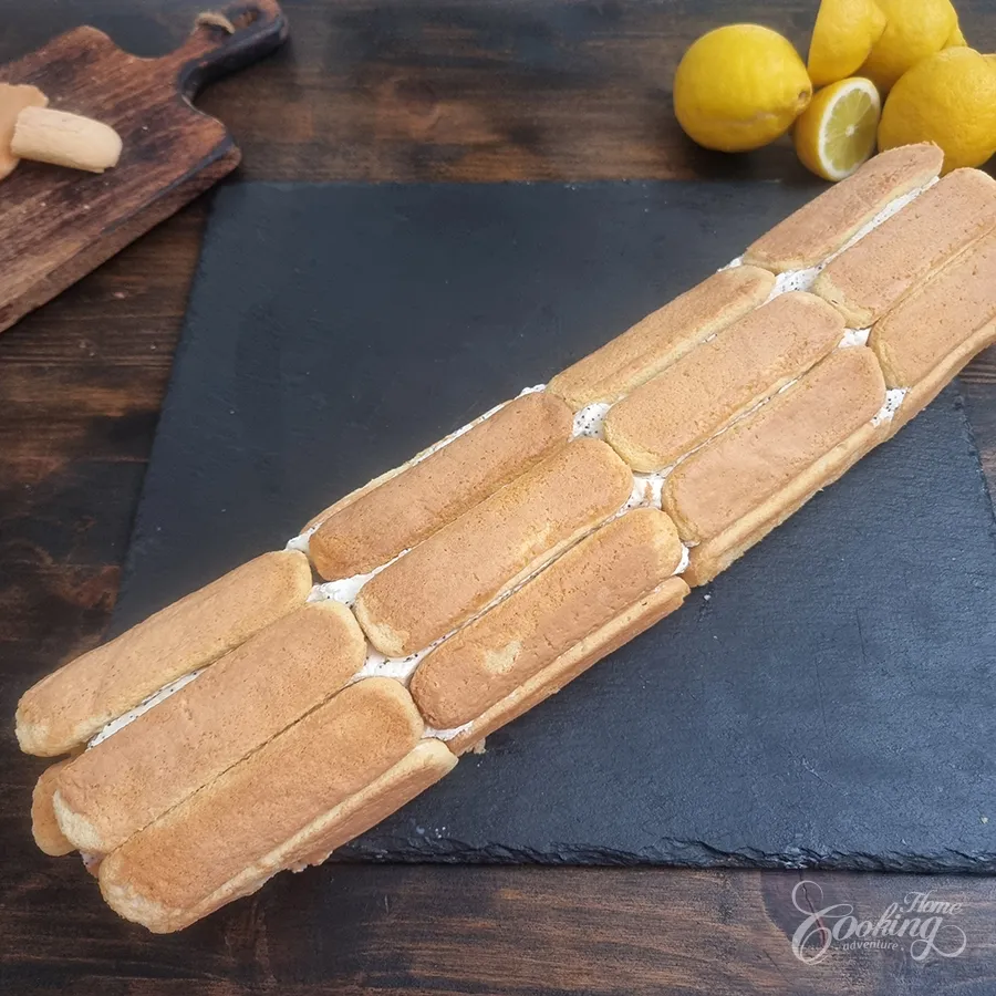 Slice and serve chilled. The contrast of the delicate ladyfingers, airy cream, and vibrant lemon creates a dessert that feels light, refined, and beautifully balanced in every bite.