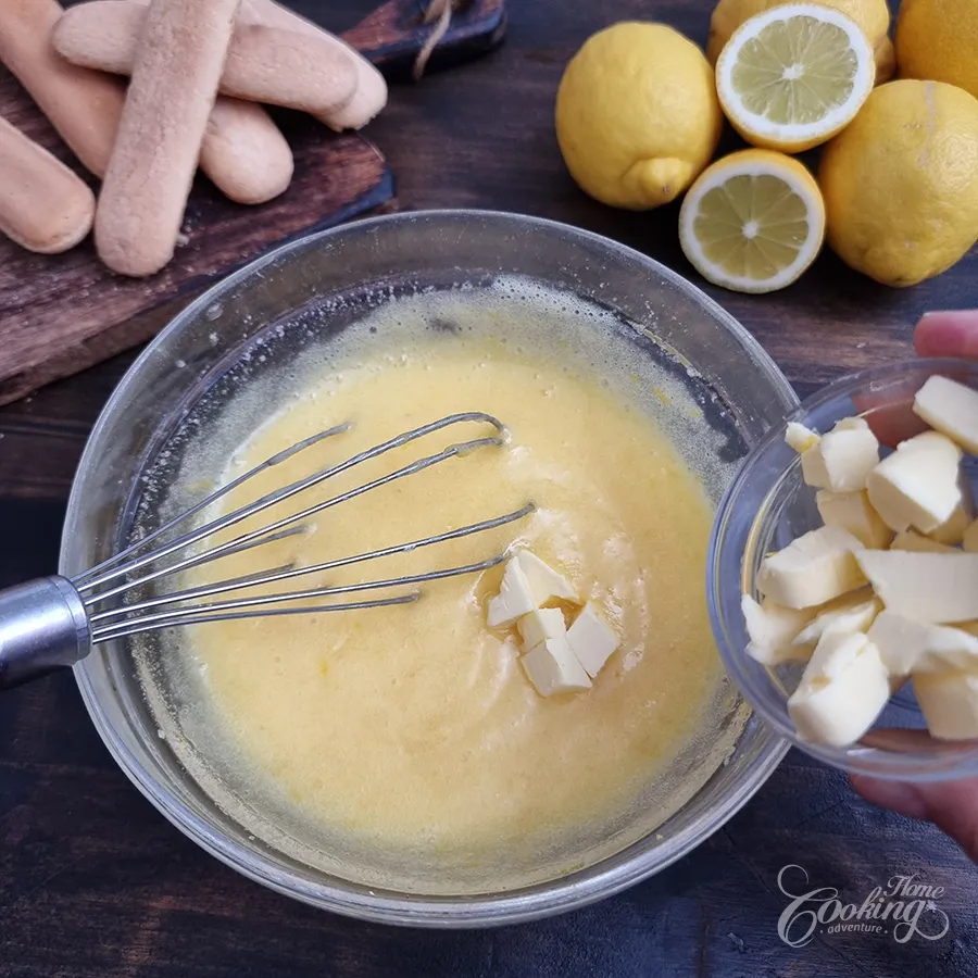 Remove from the heat and gradually add the butter, whisking until fully melted and silky smooth. Let the lemon curd cool, then refrigerate until ready to use.