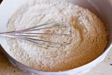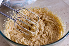 Cu mixerul la viteza mică, încorporați amestecul de făină.