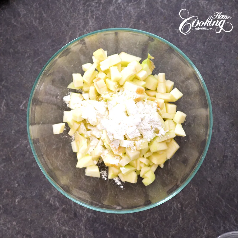 Transfer the apple pieces to a medium bowl and toss with one tablespoon of flour. Set aside until ready to use.