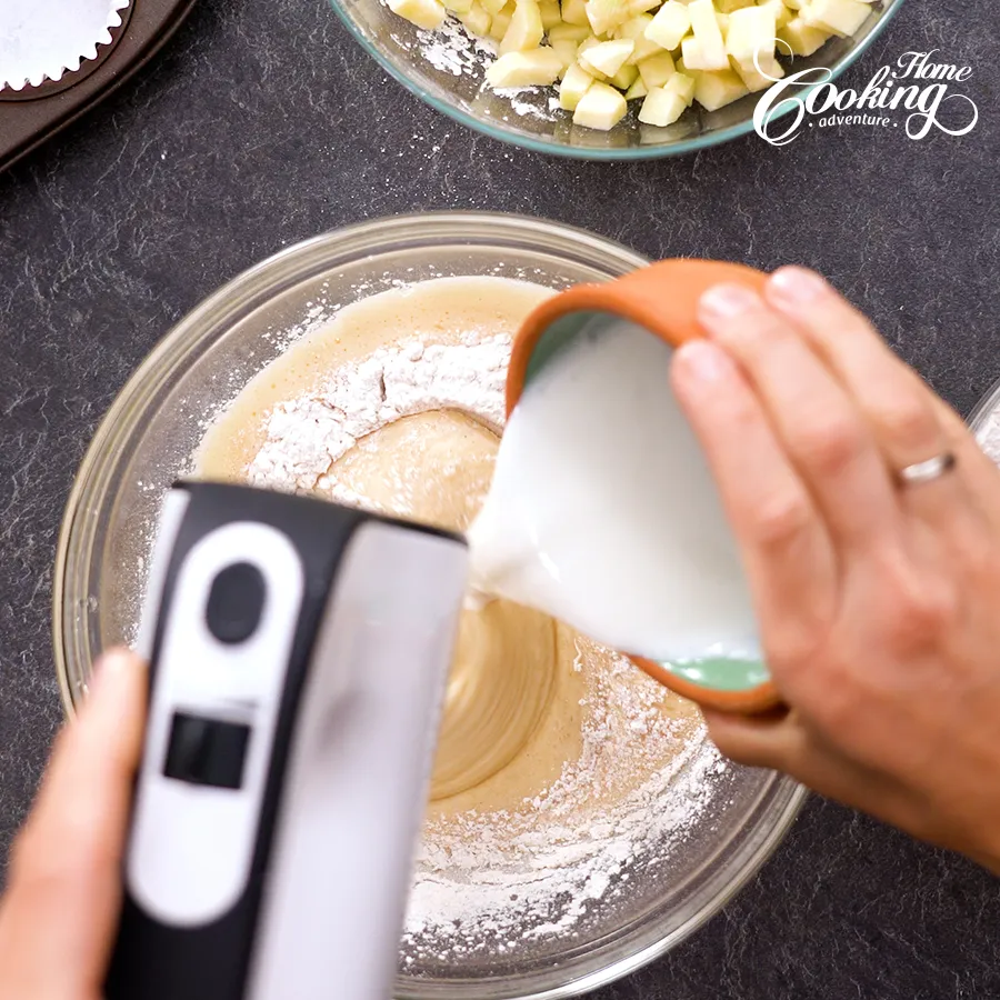 Gently fold the apples into the batter.