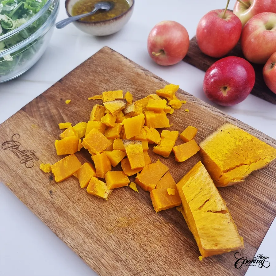 Cut the pumpkin into small cubes.