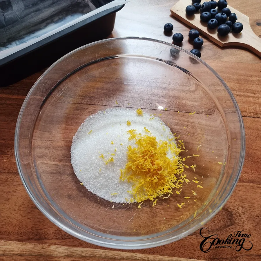 In a medium bowl add the blueberries and a tablespoon of flour and toss to coat evenly.