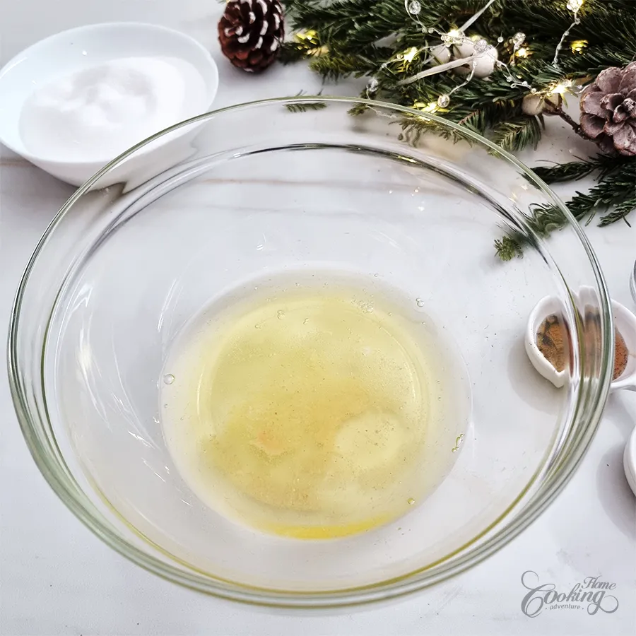 Sprinkle the cornstarch over the meringue, add vinegar and vanilla.