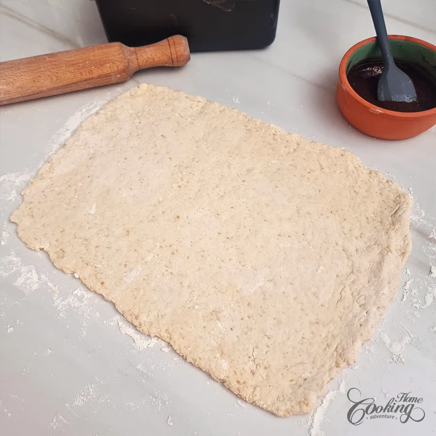 On a lightly floured surface, roll the dough into a 9×12-inch (25×30 cm) rectangle.
