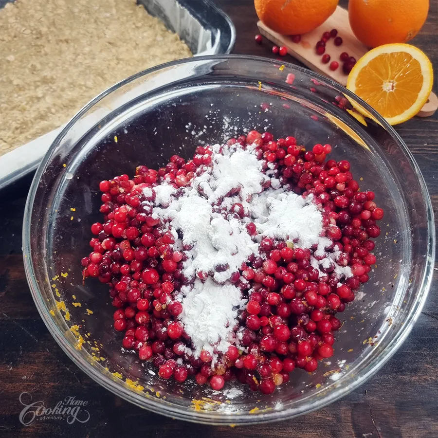 Sprinkle the remaining ⅓ crumb mixture over the cranberries.