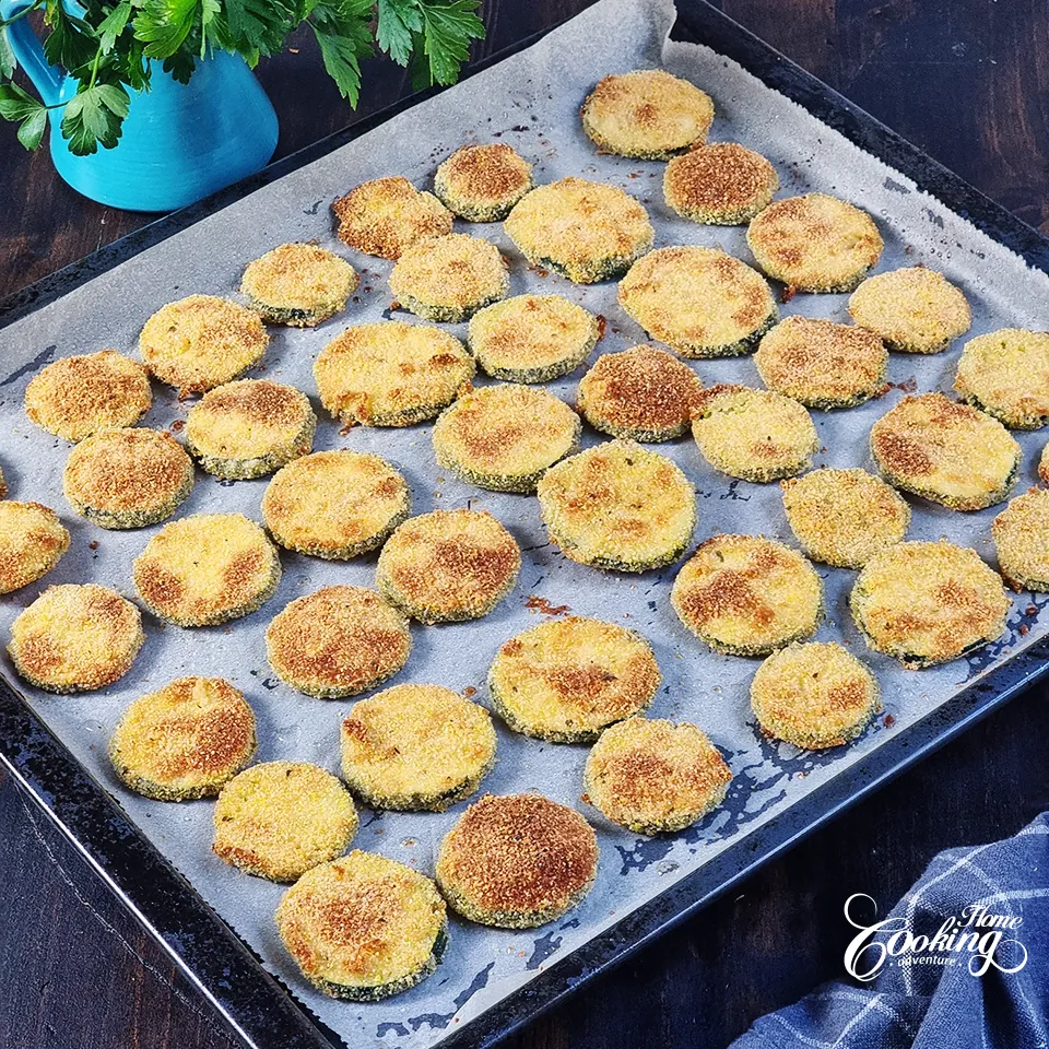 Place the zucchini slices in a single layer on the prepared baking sheet.