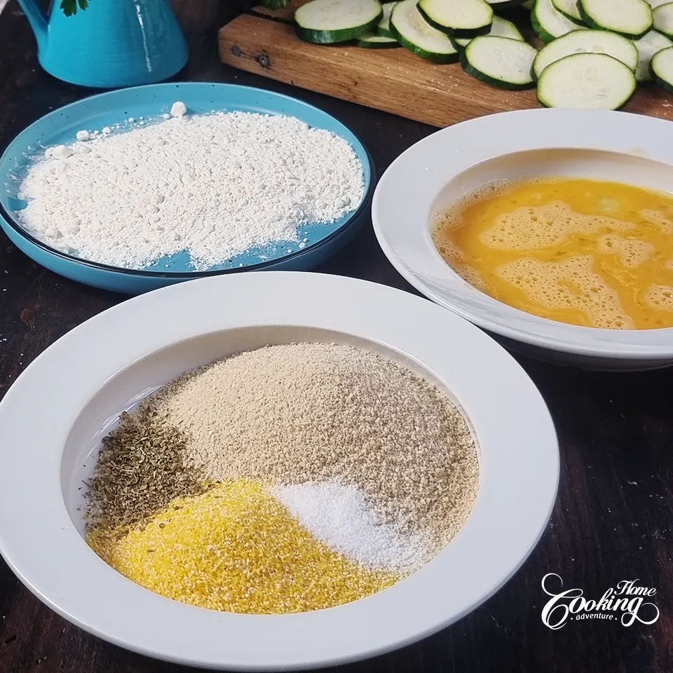 Combine breadcrumbs with cornmeal, salt and oregano into another plate.
