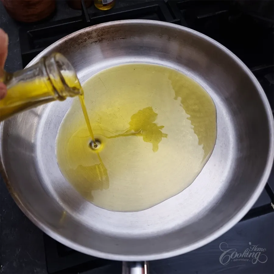Heat oil in a wide pan over medium heat.