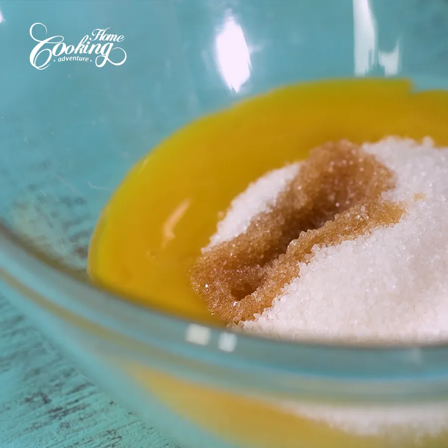 In a medium bowl mix yolks with ½ cup (100g) sugar and vanilla extract, until creamy and pale yellow colored.