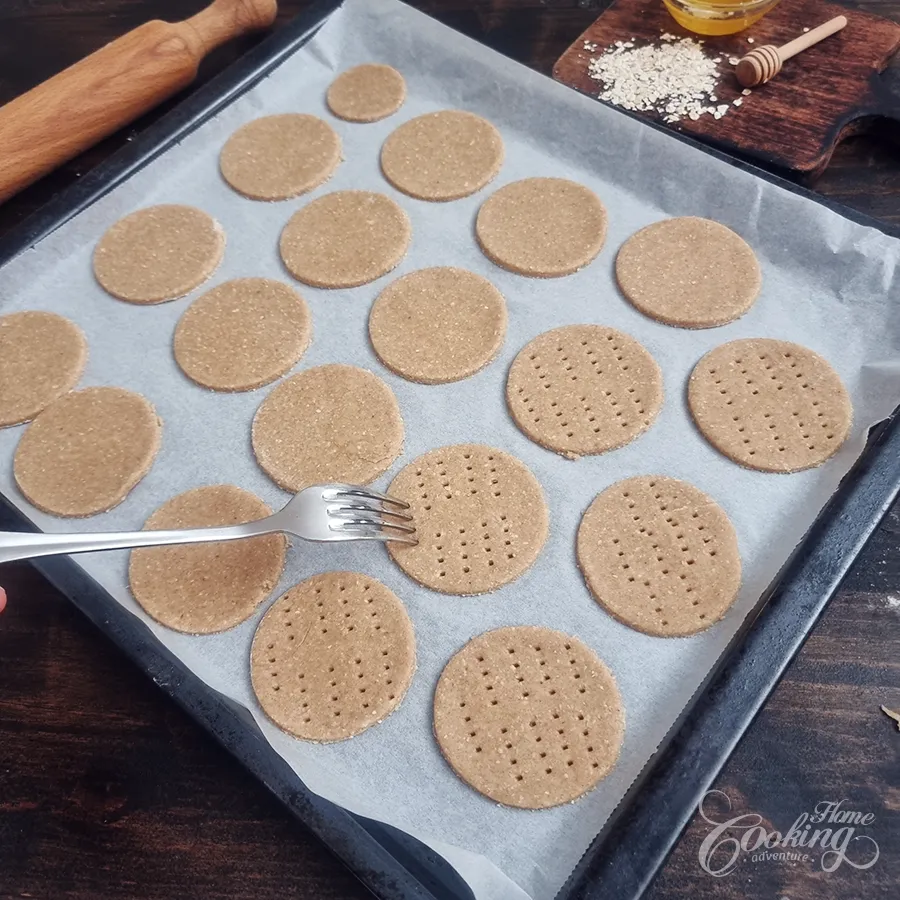 Place the biscuits onto the prepared baking sheet, leaving a little space between them.