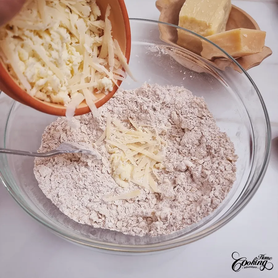 Add the grated cheese and give a quick stir to combine with the flour mixture.