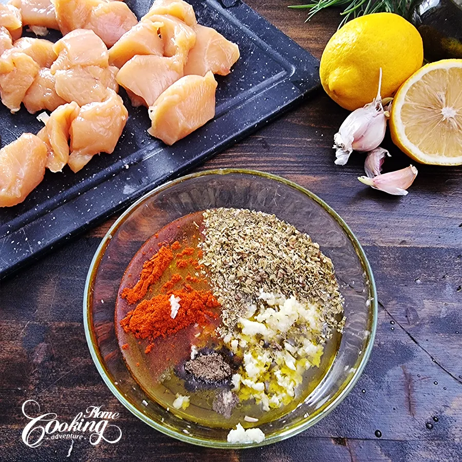 Thread the marinated chicken onto metal or soaked wooden skewers. If you don’t want to skewer, you can place the pieces directly on a parchment paper-lined baking sheet or use a wire rack over a tray for better air circulation.