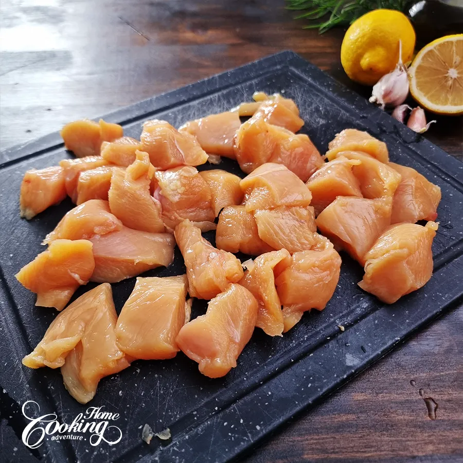 Cut the chicken into 1.5-inch (4 cm) pieces.