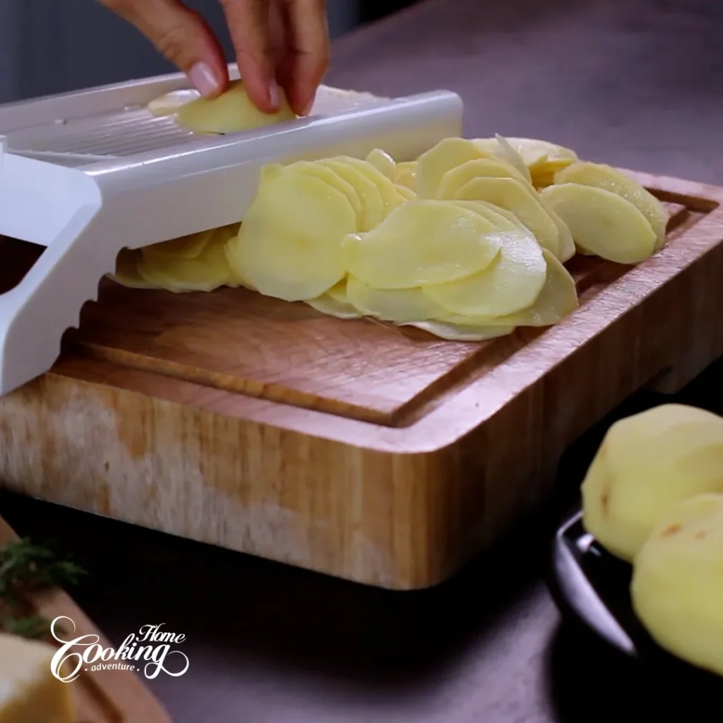 Cut the potatoes into thin slices.