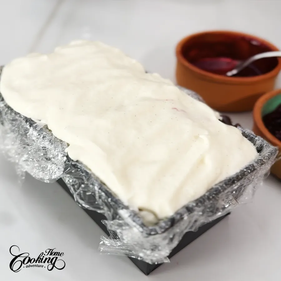 Line with plastic wrap a 8½ x 4½-inch (1 liter capacity) loaf pan. Set aside.