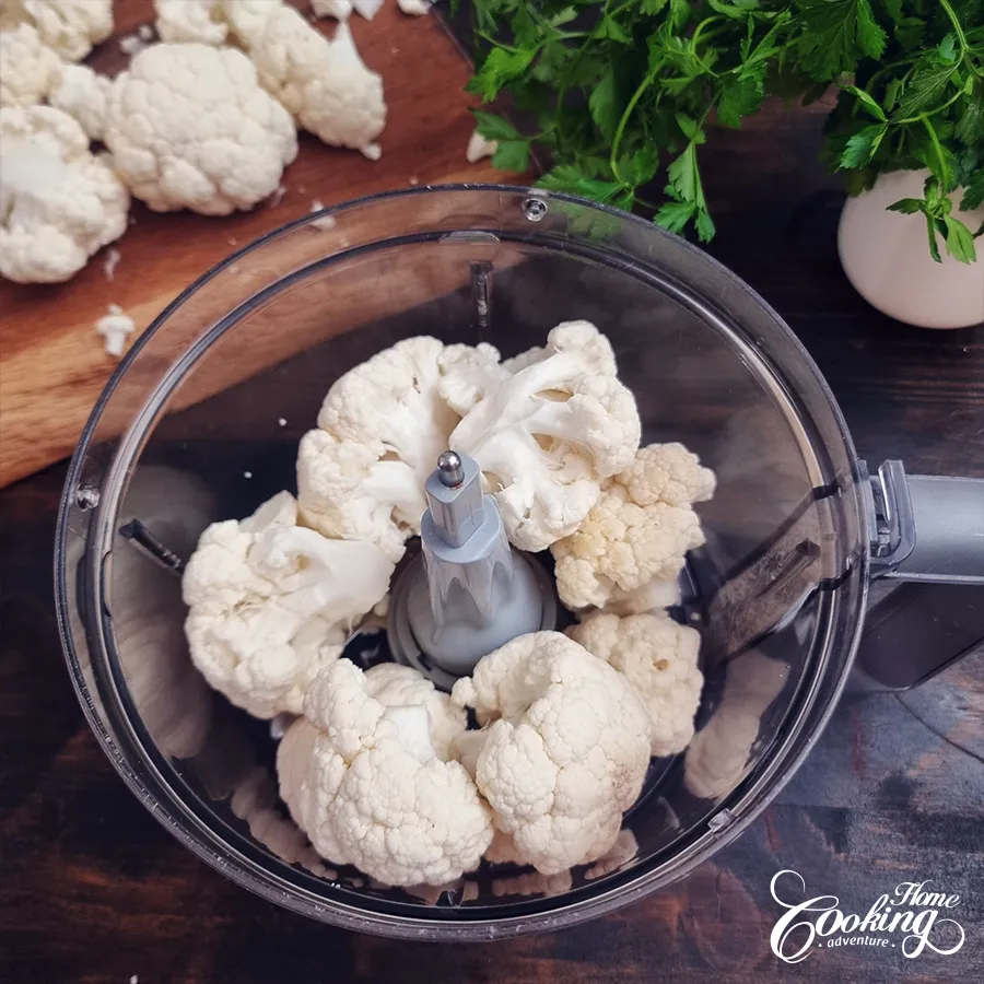 Add the florets in batches into the bowl of a food processor.