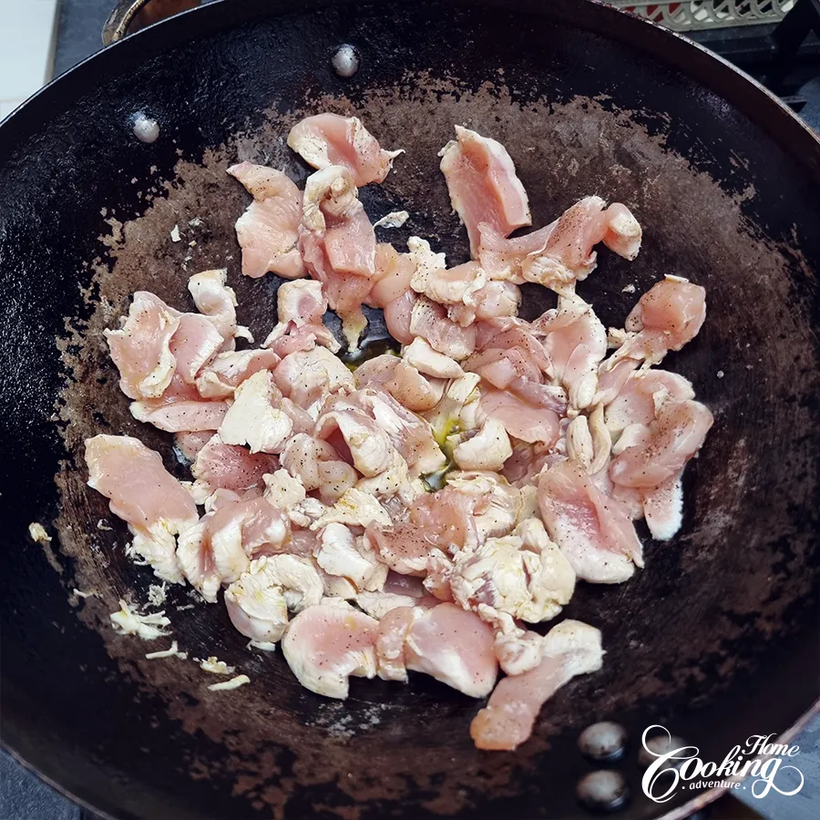 Add thinly sliced chicken.