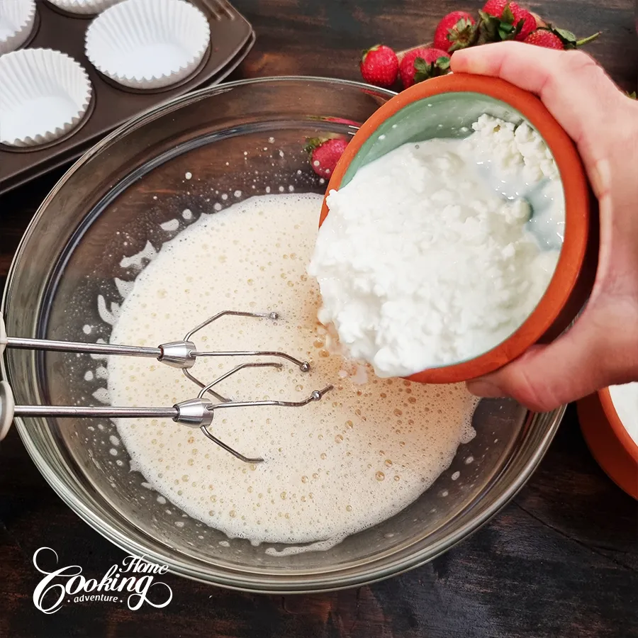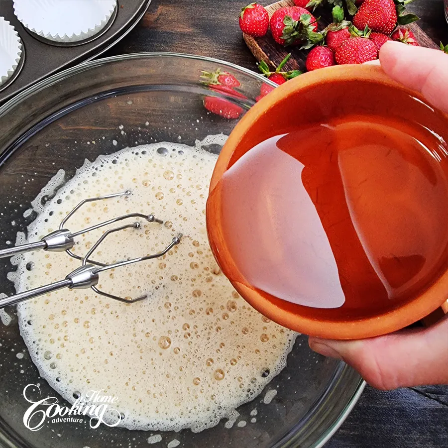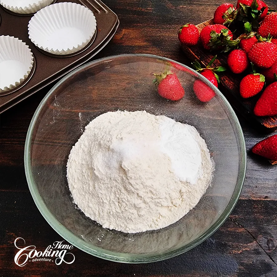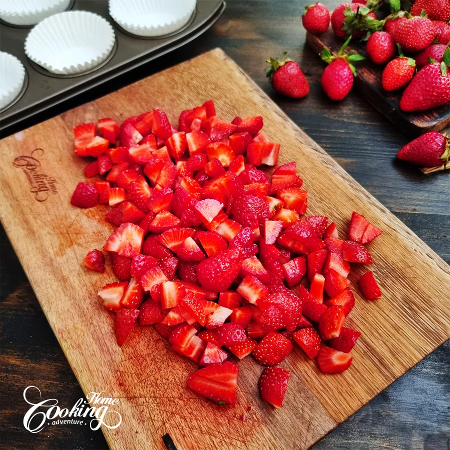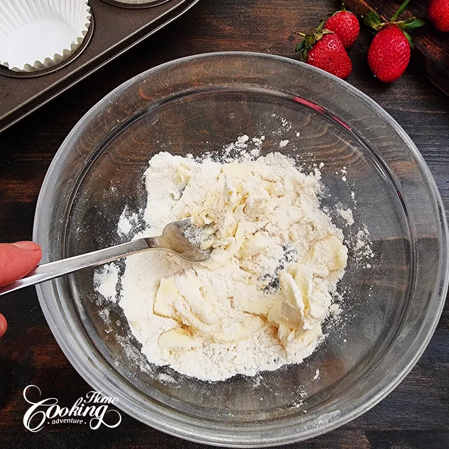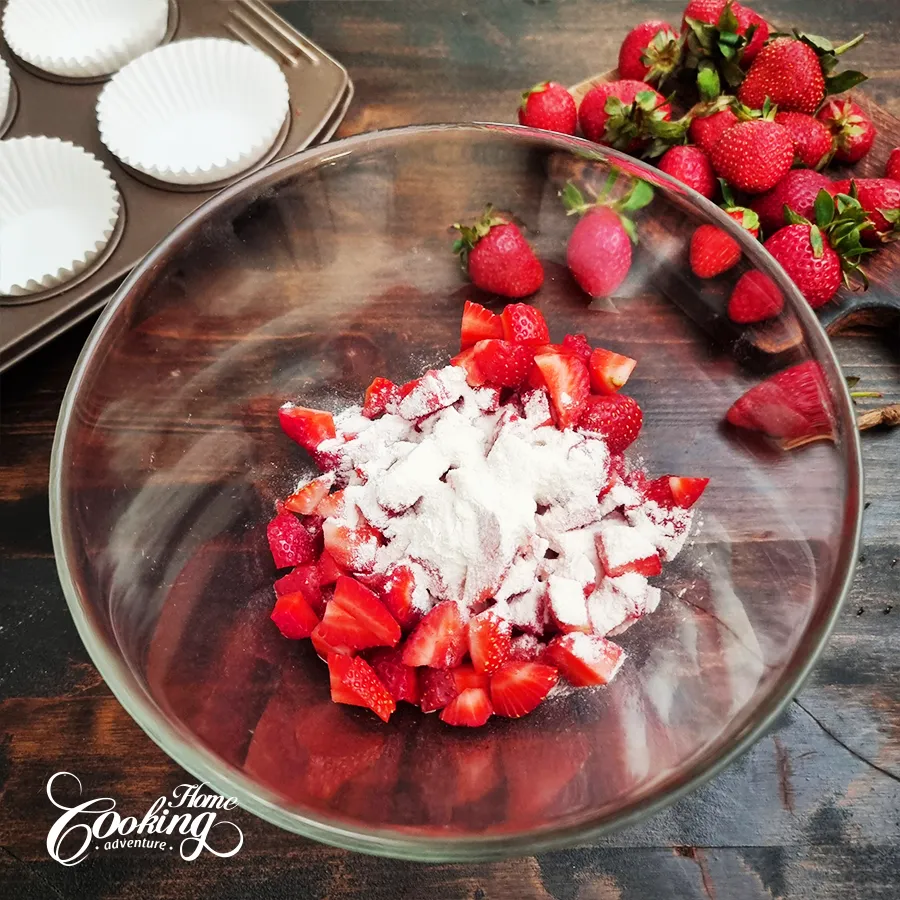 Gently fold the strawberries into the batter. Don’t overmix the batter.