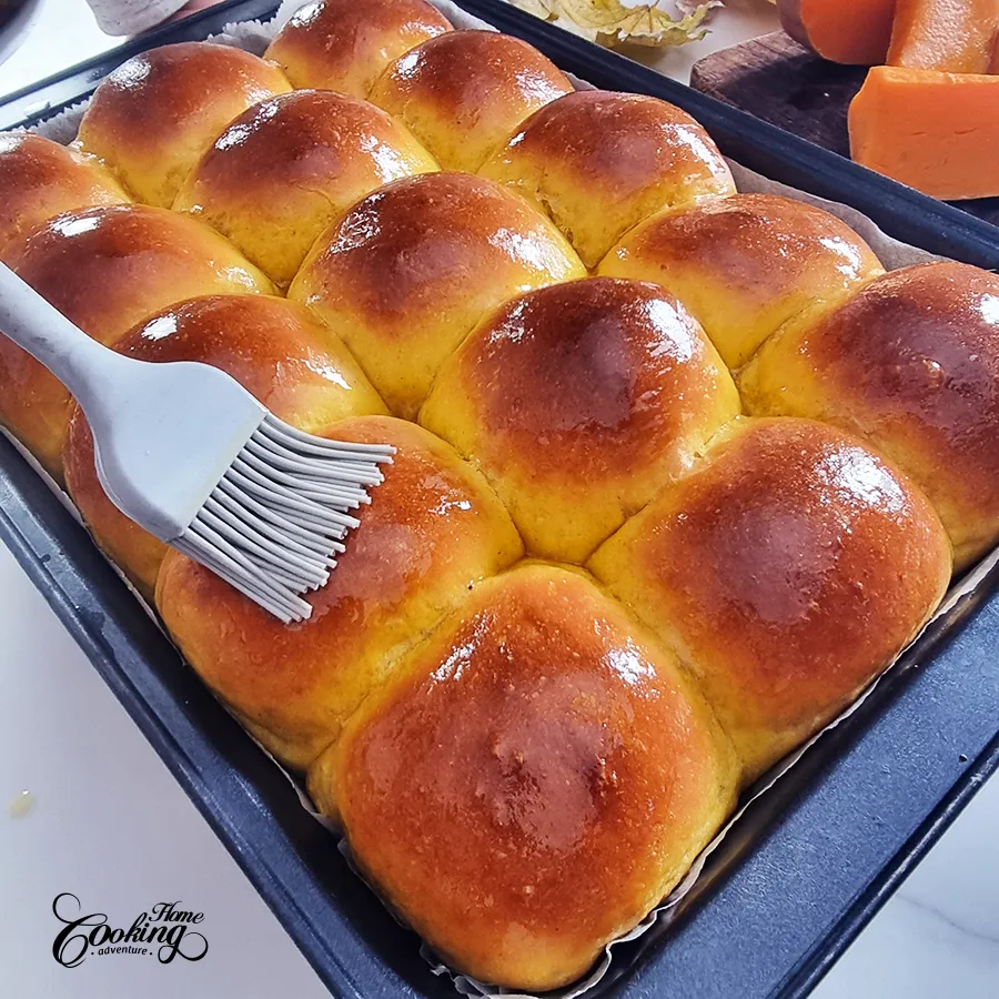 Remove the rolls from the oven and brush with melted butter. Serve the rolls warm.