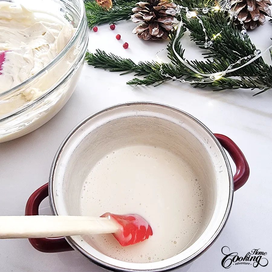 Prepare the white chocolate coconut cream cheese filling.
