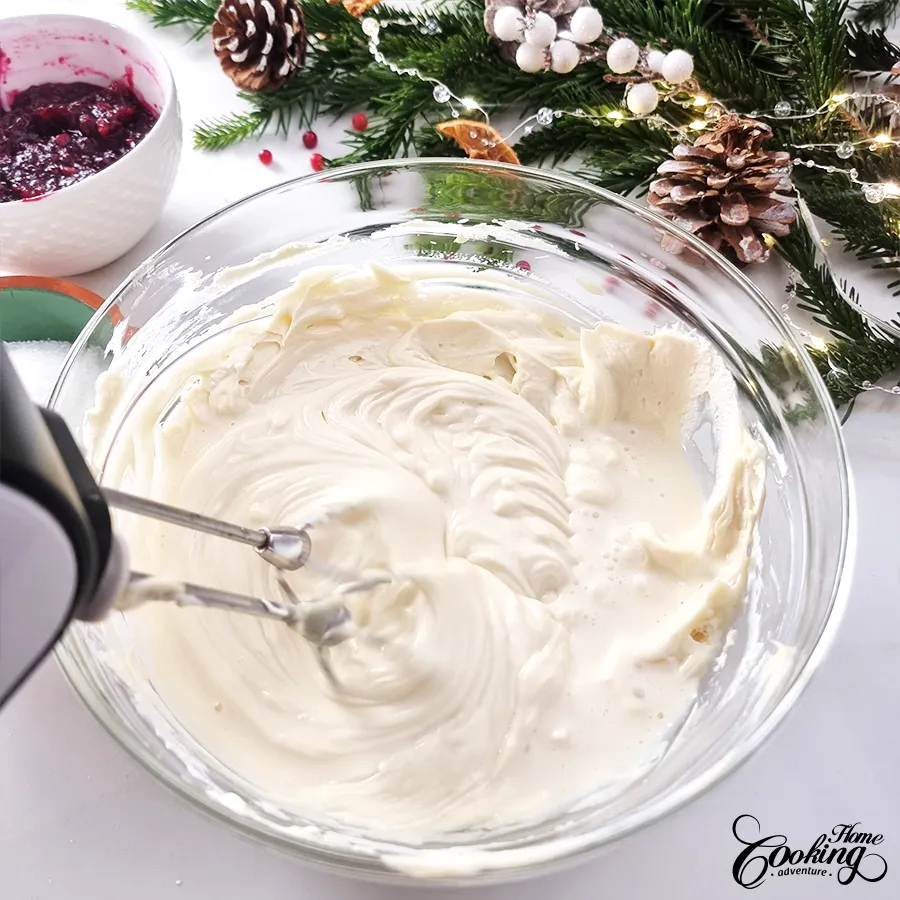 Finish with the last third of the cream cheese filling.