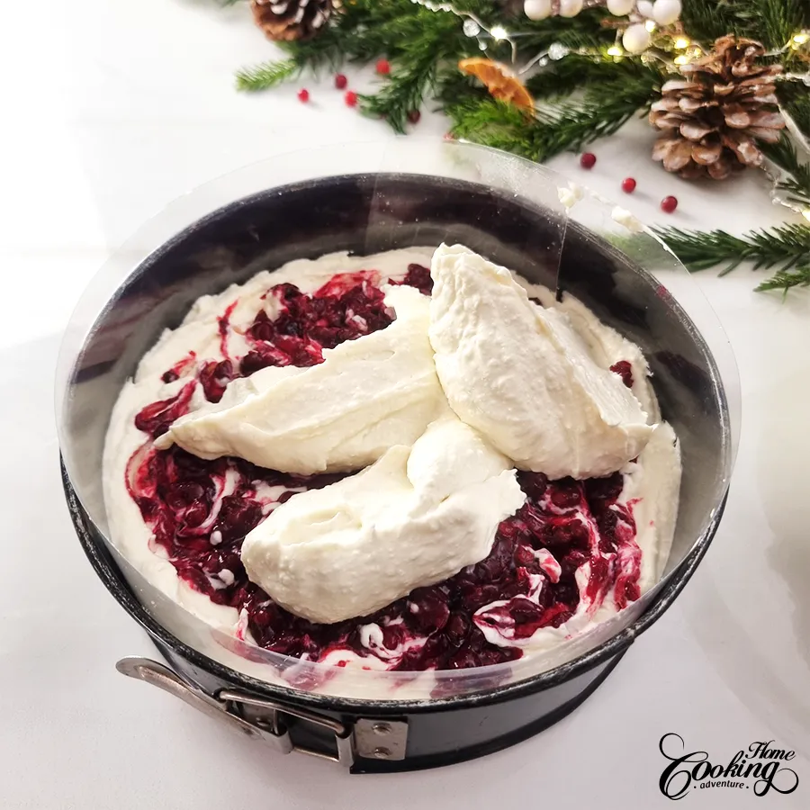Continue with adding the remaining cranberry sauce and swirl again.